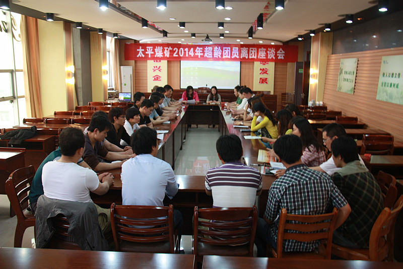 5月19日上午九点,太平煤矿团委在机关楼六楼会议室组织召开了2014年超龄团员离团座谈会。矿属各团支部书记、部分离团团员和团委委员参加会议。会议由团委副书记霍瑞芬主持。